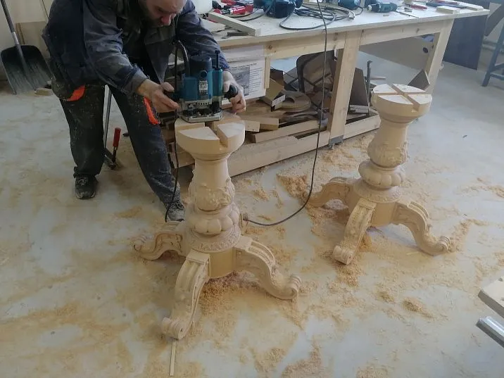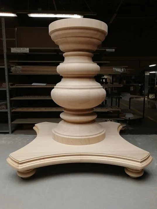 Wooden bases are ideal for classic tables. They give furniture warmth and naturalness, perfectly matching with solid wood or laminate tabletops. Such bases are durable if properly treated to protect against moisture and mechanical damage. -
