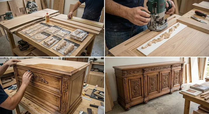 The modern approach to DIY furniture is built on modularity. Instead of trying to carve a decorative leg or glue a tabletop from boards, you buy ready-made components—turned balusters, laminated panels, carved overlays, hardware—and assemble furniture from them like building blocks. But it's an intellectual construction set where every decision requires understanding the material, proportions, and technology.