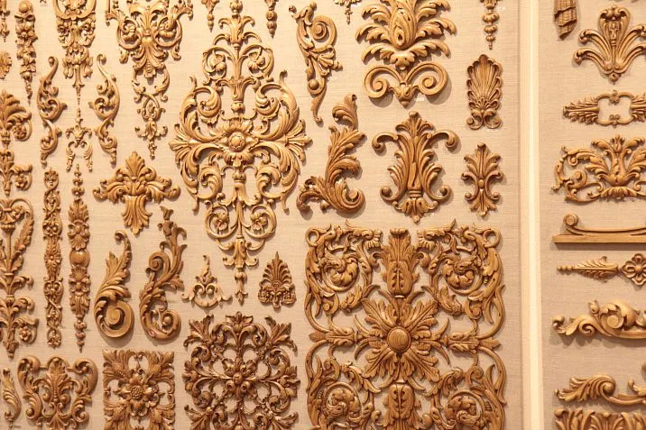 ● Natural wood, stone, gypsum and polyurethane decorative elements.