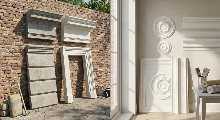 Have you ever tried to imagine how a modest cottage suddenly transforms into a mini-palace just with the help of relief cornices and columns? Facade molding adds volume and status, but only if it can withstand frost, rain, and sun. Inside, it's a different story: there, coziness, lightness, and harmony with furniture reign. Let's dive deeper – and you'll understand why the right choice of molding changes not only the look of your home but also your mood every day.