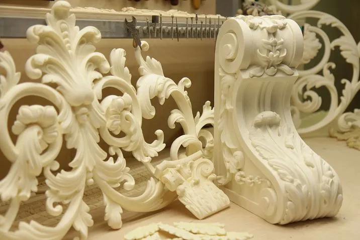 Textural effects expand design possibilities. Imitation of stone, wood, metal, fabric is created on the surface of polyurethane items with remarkable authenticity. Tactile sensations complement visual perception.
