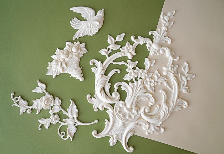 molded decoration made of polyurethane should match the overall style of the room. For example: