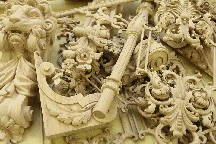 Profiling and decorative elements are milled on high-speed equipment with spindle speeds of 18,000-24,000 rpm. Use of cooling fluids prevents tool overheating and wood charring.