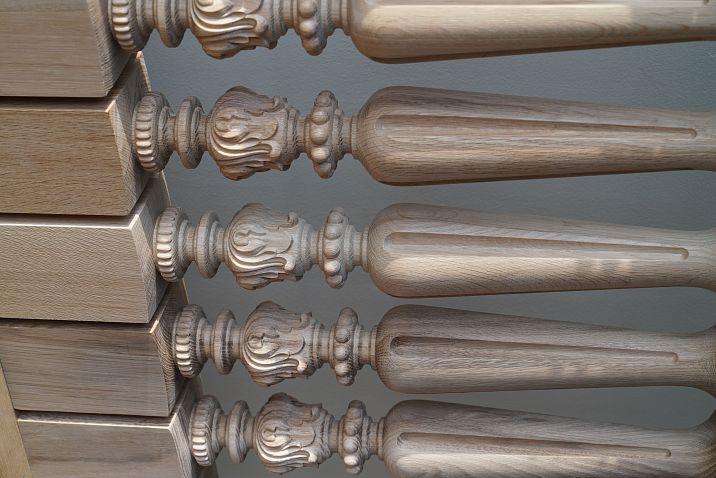 balusters for staircases perform both decorative and structural functions. They not only provide additional stability to the staircase, but also serve as a decorative element emphasizing the interior style. Modern solid wood balusters can have various shapes — from classic carved designs to minimalist contemporary interpretations. Their quality depends directly on the processing methods used in production.