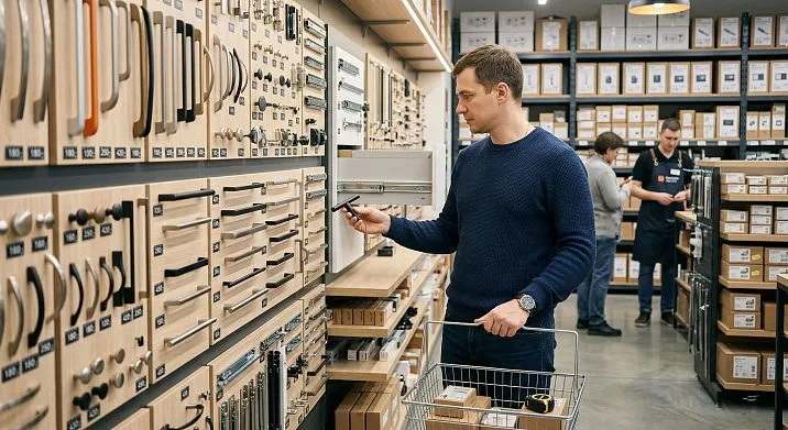 In a specialized section, all products of one type are presented side by side: you can compare two hinge options by load capacity and lifespan, choose handles with the same finish, compare three types of glides. In a general store, such structure is absent — hardware is dissolved among thousands of other items.