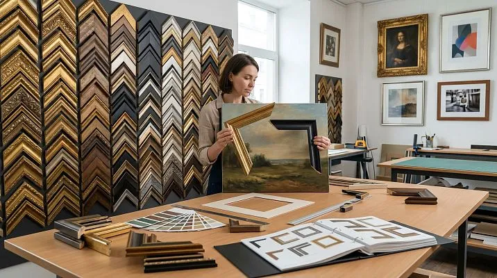 A gilded frame on a dark green wall is expressive. The same frame on a brick wall is visual chaos. The frame interacts not only with the artwork but also with the surface it hangs on. Consider the color, texture, and style of the wall when selecting the profile and finish.