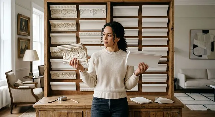 A wide, monumental cornice in a small room with a 2.5 m ceiling is decorative suffocation. A cornice 120 mm wide 'eats up' 5–8% of the ceiling height visually. In small rooms, only narrow, delicate profiles work: 30–50 mm maximum.