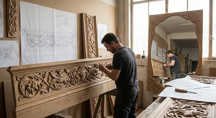Design development and approval — 1-3 weeks depending on task complexity and customer feedback responsiveness. A simple baseboard profile can be designed in a few days. A complex carved composition for an entire room requires weeks of designer work. Numerous adjustments and concept changes prolong this stage.