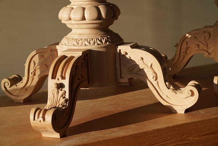 Such legs are ideal for classic and traditional interiors. Their refined appearance and intricate decorative elements highlight the luxury of a dining or coffee table. For example, oak legs with elegant carving are not just a functional element, but a true work of art. -