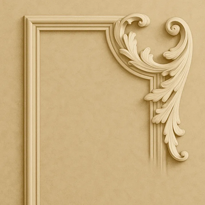 Wooden molding remains a classic choice for creating elegant and natural framing. Wood allows creating complex profiles and ornaments, easily accepts various types of finishing—from simple painting to patina and gilding. Especially popular are products made of oak, beech, ash, and other hardwoods, which possess high strength and noble texture.