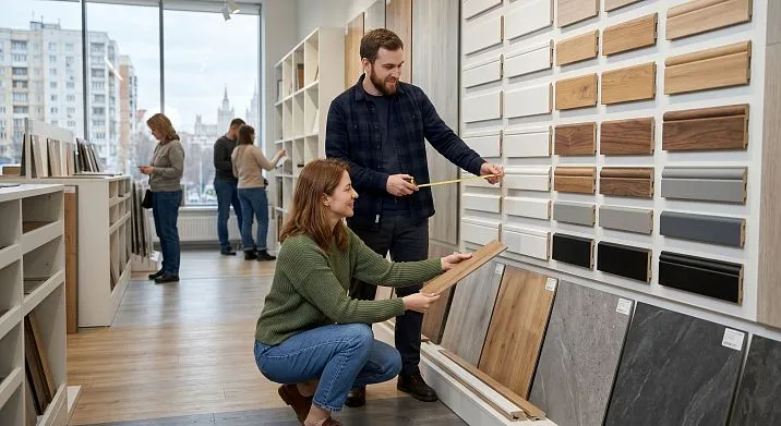 Solution: always look at samples 'in person'. Order a trial plank or come to the showroom with a sample of quartz vinyl, a door trim, and a fragment of wallpaper. Comparing in real lighting saves time and money.