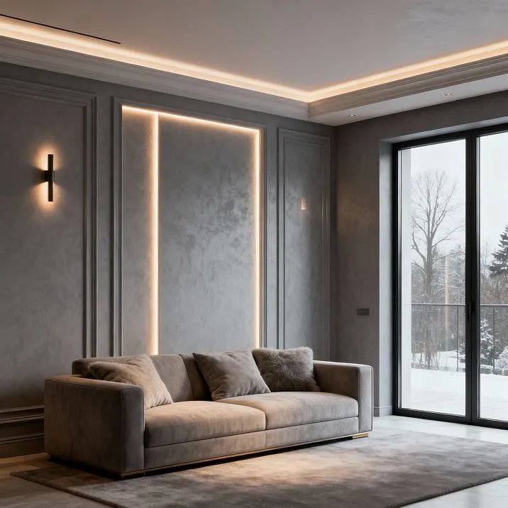 Integration with stretch ceilings and decorative moldings expands possibilities. Light lines highlight architecture, reveal volumes, and create depth. Multi-level lighting with independent control of contours provides flexibility in scenarios from work to relaxation.