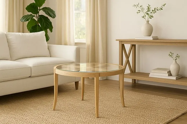 The central pedestal must have a sturdy base — diameter no less than 60 cm for tables up to 120 cm in diameter. This ensures structural stability even under uneven load.
