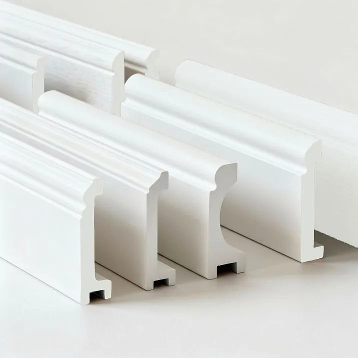 Skirting board made of duropolymer Orac Its absolute moisture resistance guarantees longevity in humid environments. Polystyrene is also applicable, especially for ceiling moldings, but requires quality silicone sealant at joints.
