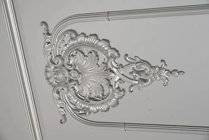Special metallic coatings allow imitation of various metals — from noble gold to modern chrome. Such Moldings made of polyurethane become a striking accent in interior design and require special lighting approaches to achieve maximum effect.