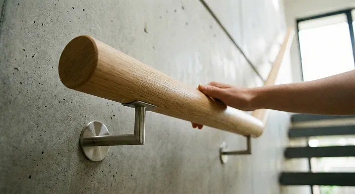 Tactilely, an oak handrail is warm (low wood thermal conductivity), with a slight roughness (if coated with oil preserving texture), pleasant for daily contact. Oak darkens over time, acquiring a noble patina — after ten to twenty years, the handrail looks even more beautiful than new.