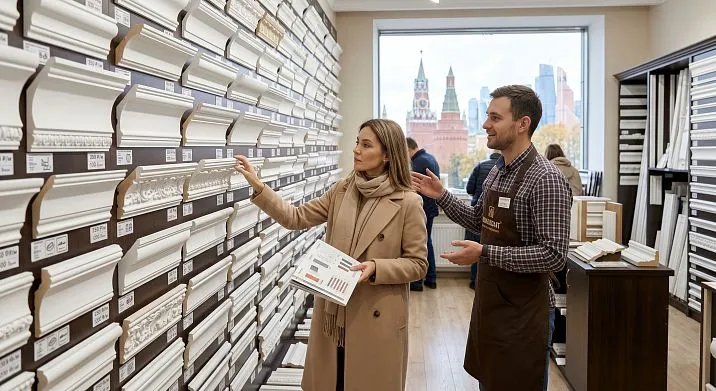 Buying ceiling skirting in Moscow today means choosing from four fundamentally different materials, dozens of profiles, wide and narrow lines, smooth and ornamental sections. Which one depends on what exactly you have on your ceiling, the height of the walls, the style of the space, and what you are willing to fill this seam between the ceiling and the wall with.