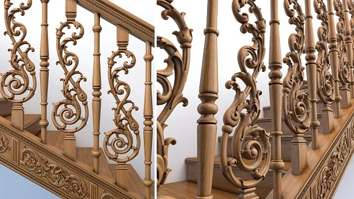 Process Installation of balusters and handrails on wooden stairs Design begins with detailed planning of all railing elements. The number of balusters is calculated based on the length of the stair run and requirements for maximum spacing between elements. It is necessary to account for the dimensions of the balusters themselves and ensure even distribution of elements along the entire railing length.