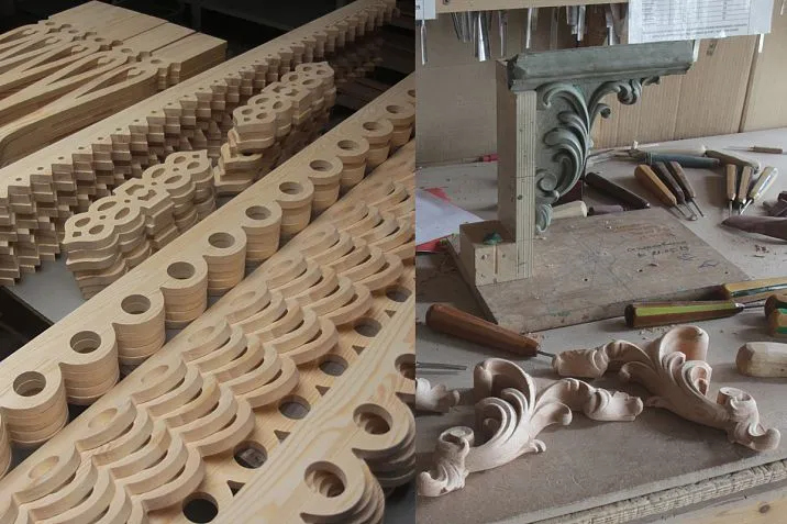 At this stage, artisans transform ordinary wood into true works of art. Hand-carving, performed using traditional tools, is often supplemented by computer modeling, enabling the creation of complex and detailed patterns. Modern processing methods allow them to imitate both classical carving and abstract contemporary forms.
