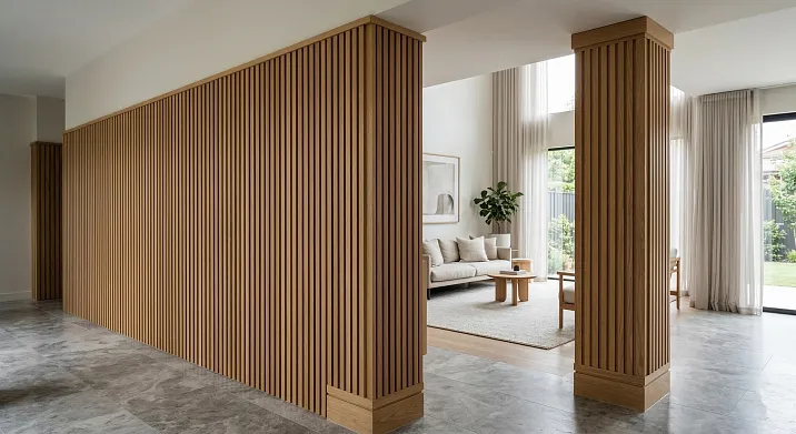 slatted panels for wall finishing создают ритм. Пилястра создаёт акцент. Вместе они образуют систему, в которой стена перестаёт быть нейтральным фоном и становится полноправным участником интерьерной композиции. Именно об этом союзе — строгом, выверенном, способном работать как в современном пространстве, так и в классическом — и пойдёт речь в этой статье.