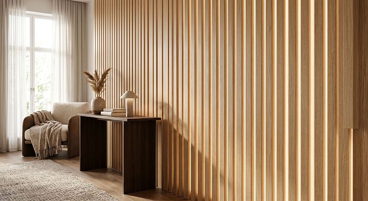 Expensive interiors are rarely created with money—they are created with an understanding of how light works. The right combination of slat rhythm, precise gaps, and directional light flow creates that effect of depth and volume that previously required heavy framing, plaster moldings, and complex milling. Today, all this is replaced by one smart solution—Slatted panels with lighting, which work through the play of light and shadow, turning an ordinary wall into a living architectural surface.