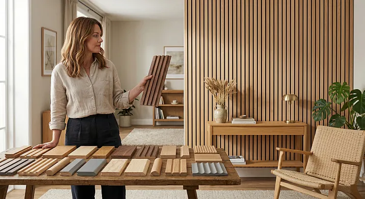 If the wall is an accent → wide slats, contrasting color, dense rhythm or lighting
