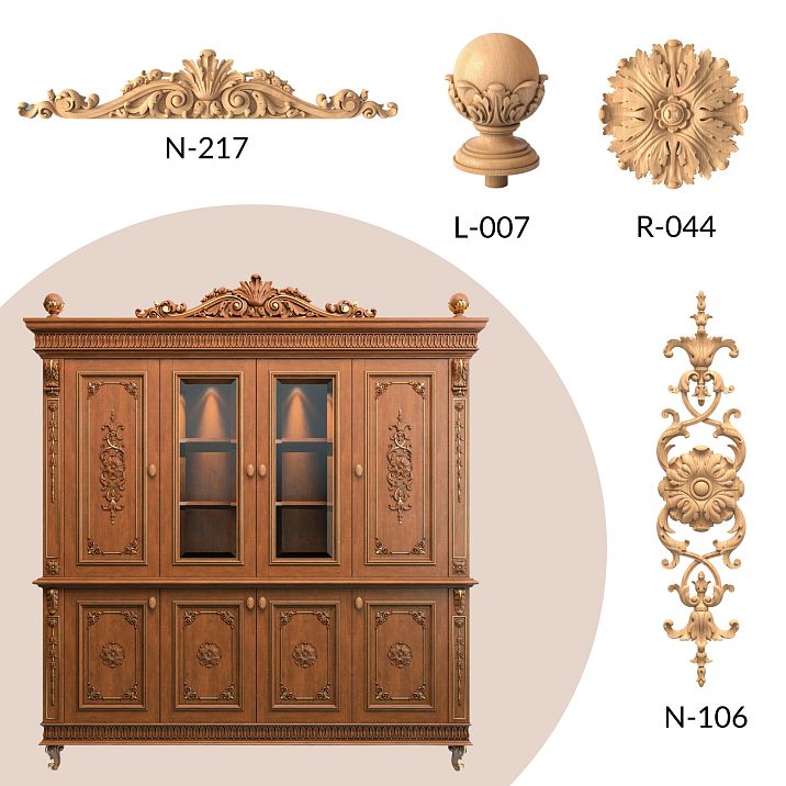 ● Unique carved elements for interior furniture.