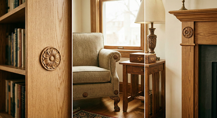 In this article, we will explore the world of wooden rosettes: where to use them, how to scale them, and how to combine them with other elements. We will see how a single small rosette transforms a ceiling, how corner rosettes on furniture turn a simple facade into a work of art, and how rosettes on doors create a visual connection with the architecture. We will discuss the rules that turn a decorative element into a tool for creating harmony.