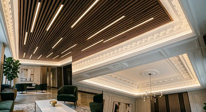 When light panels for slatted ceilings appear on the ceiling — the space comes alive. When polyurethane ceiling decor is added to them — an architectural story emerges. But between 'comes alive' and 'works as a unified whole' — there is a huge distance. It can only be covered with an understanding of how light and relief interact, enhance, or destroy each other.