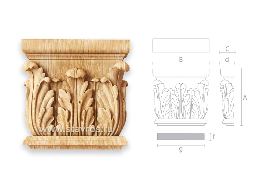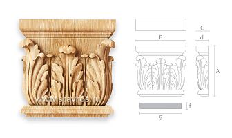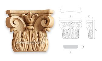 Carved capital KL-001.02 — a variant of capital KL-001. Its distinguishing feature is that it connects with pilasters PLM-14 - PLM-19. Carved capital KL-001.02 — a convenient and popular model for decorating portals, doors, furniture, and interiors.