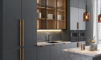 The sleek rectangular shape combines beautifully with modern fronts, glossy and textured surfaces, glass, and metal. The wide range of sizes allows using the handles for various interior items, from small side tables to tall cabinets.