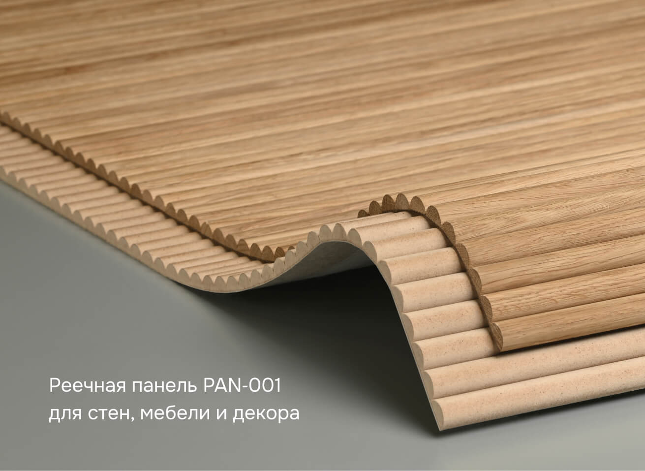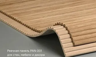 STAVROS Company presents a new slatted panel PAN‑001 — a universal solution for interior finishing and furniture decor. The panel, made of semi-circular slats on a flexible fabric base, easily follows curves and complex shapes, perfectly adheres to radius walls, columns, niches, and furniture facades, creating a seamless, almost joint-free surface.