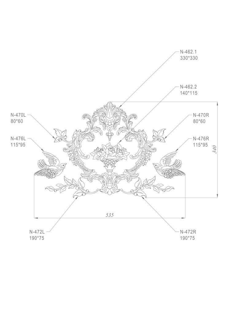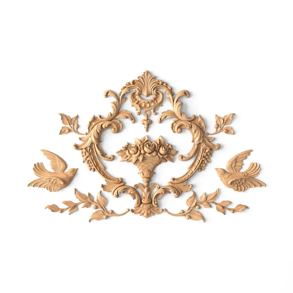 All appliqués are made from high-quality solid oak or beech wood, which is strong, durable, and eco-friendly. The wood undergoes special treatment to protect it from moisture, mold, insects, and other external influences. The carving is done with great care and skill, giving the appliqués a luxurious and refined appearance. Each appliqué has its own unique pattern and texture, highlighting the uniqueness and beauty of the wood.