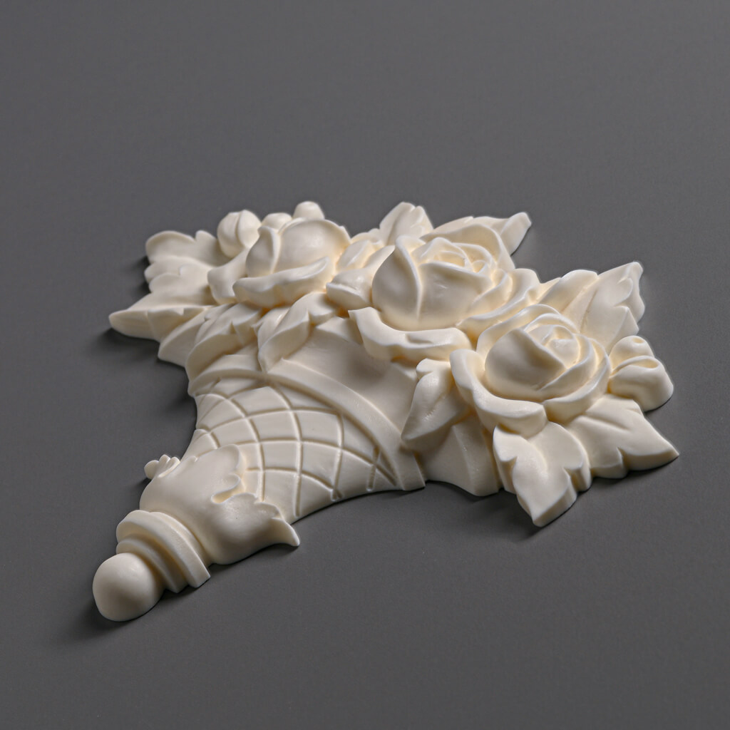 Polyurethane facade decoration is often used to decorate exterior walls and architectural elements of buildings. If the manufacturer permits using NPU-462.2 outdoors (confirm when purchasing), you can place this floral composition above the entrance door, windows, or on the pediment. The rich bouquet of roses will emphasize the exterior’s aesthetics, making the house more attractive and expressive.