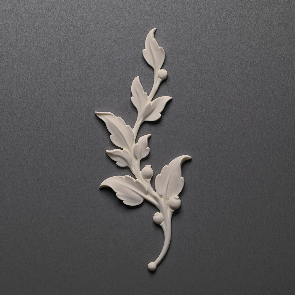 Ceiling Moldings NPU-472R — an elegant element resembling a branch with leaves and small fruits. Such a shape fits perfectly into a classic interior, but can also become a striking accent in a modern space.