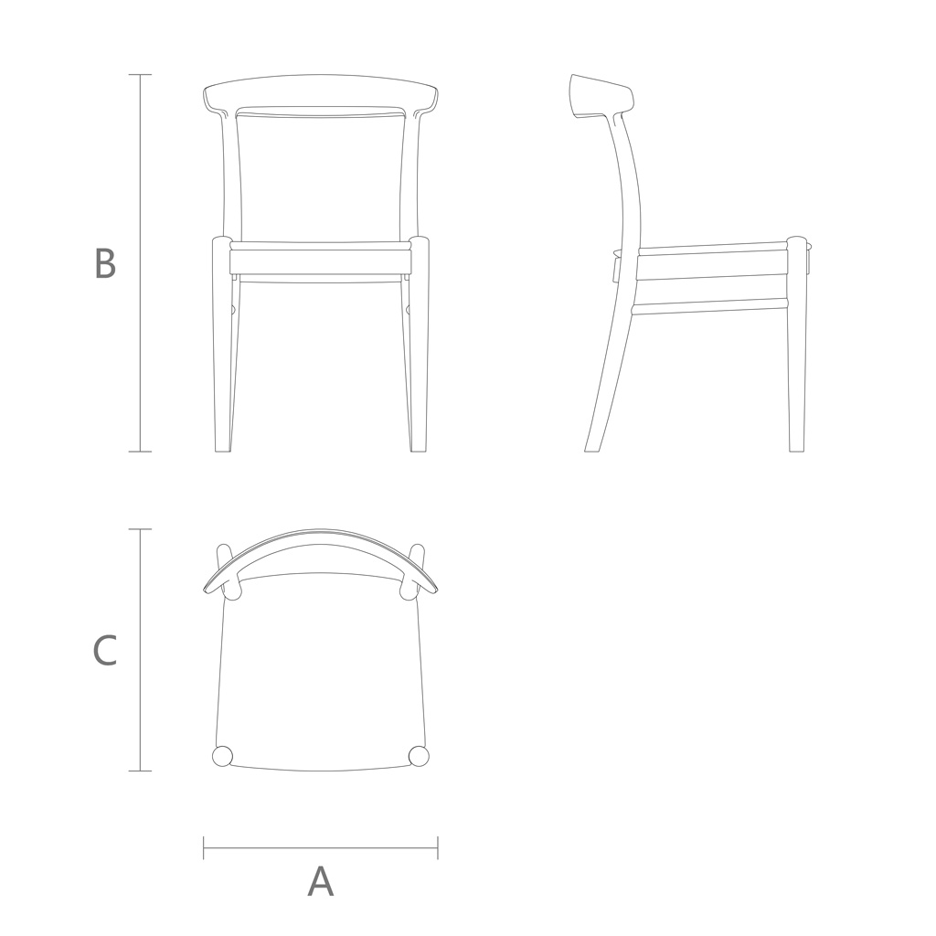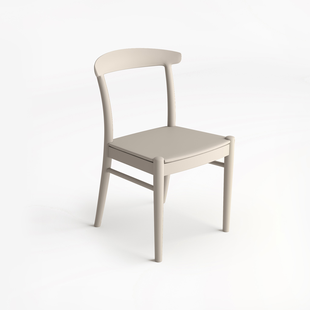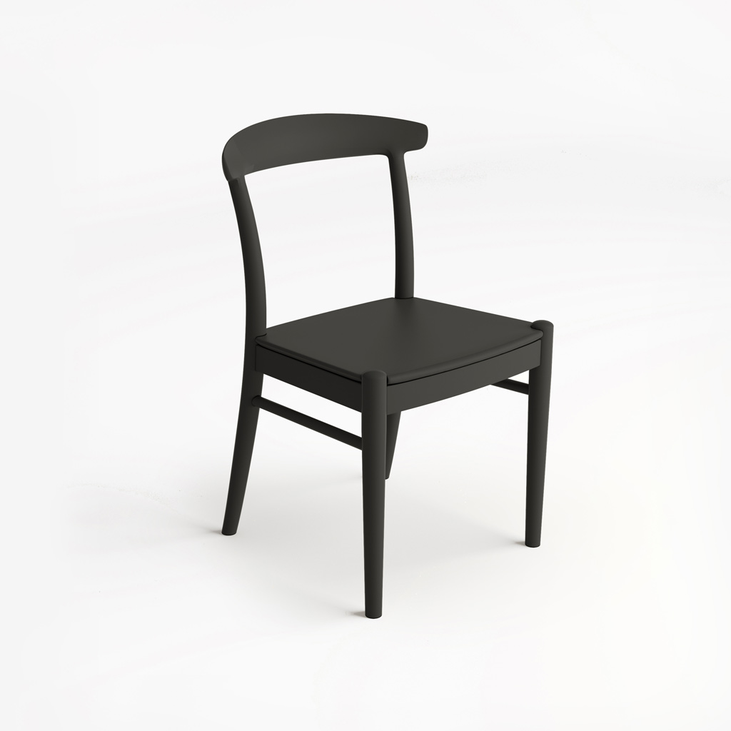 Minimalist forms. The chair appears quite simple externally: an elegant backrest smoothly transitioning into the support, a flat seat, and four stable legs. But this apparent simplicity conceals carefully considered proportions, making the model visually light yet reliable.