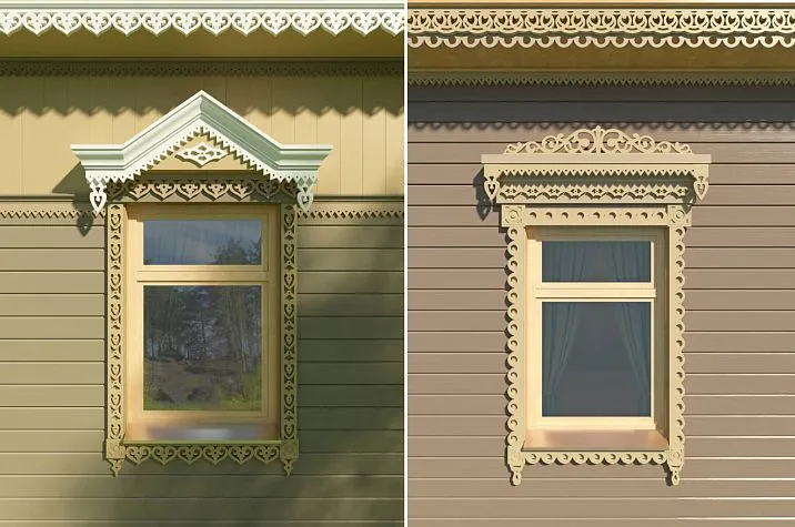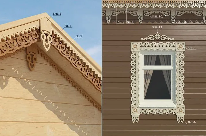 All carved items are carefully sanded and ready for further finishing. Casings are shipped only in standard sizes without coating or any treatment. The ready-made window set — "curtain" — is delivered in disassembled form.