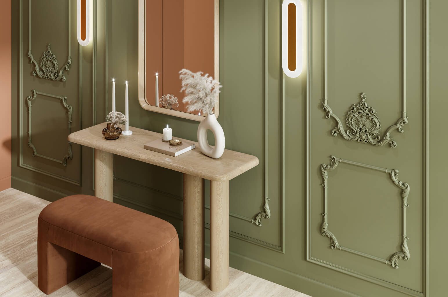 Moldings are decorative strips with profiled surfaces used to frame walls, create frames, divide space horizontally or vertically. With moldings, you can form classical wall panels, frame mirrors and paintings, and create geometric compositions.