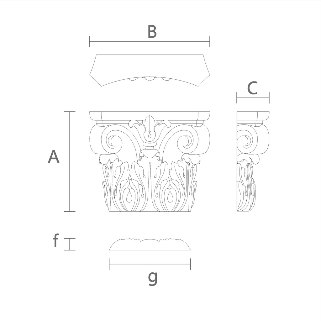 Finally, the wide variety of sizes allows you to realize any design ideas, regardless of whether you plan to decorate your interior in a classic, baroque, rococo style, or aim for modern design solutions. The carved capital KLPU-004 will fit any setting, adding elegance and nobility.