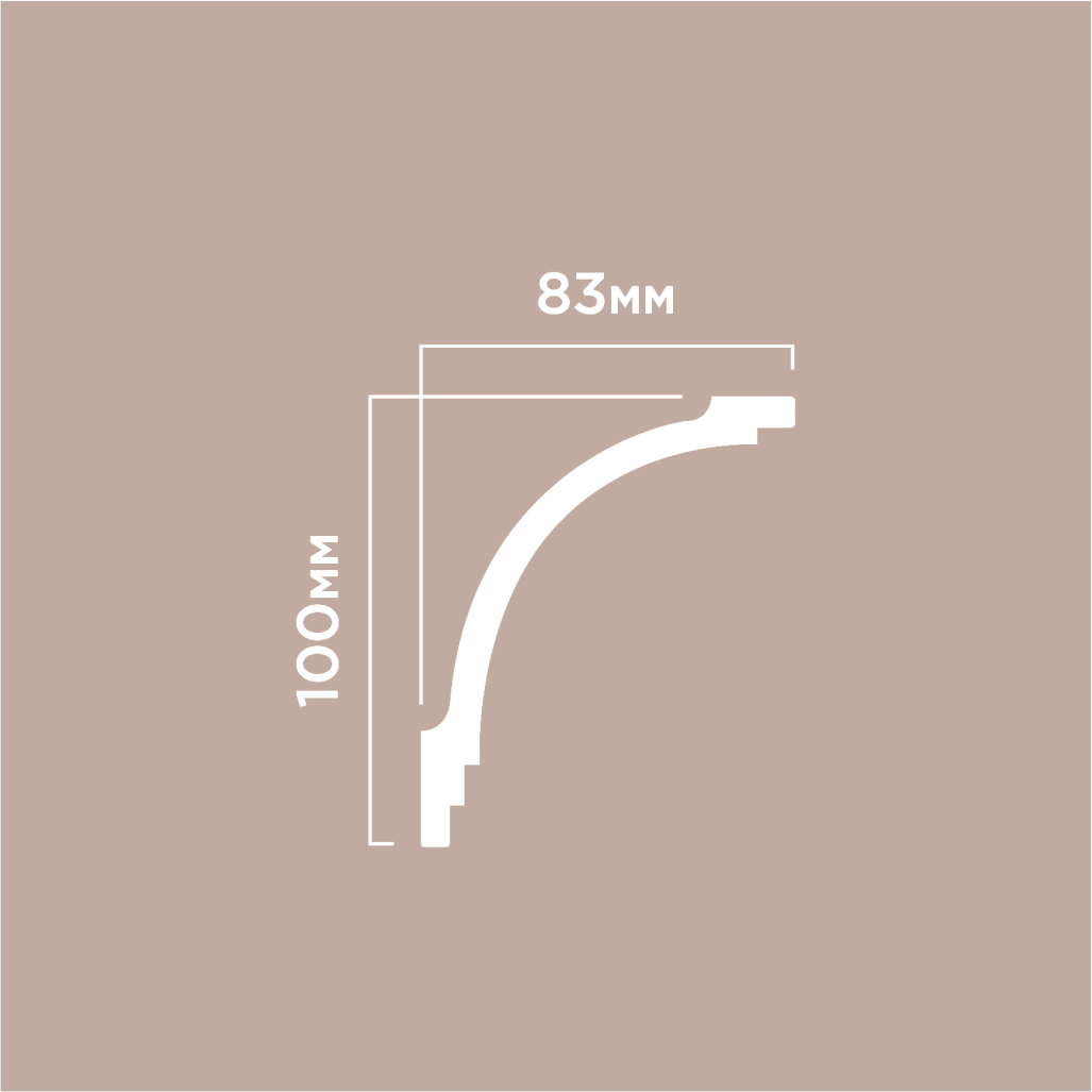 The increased profile height of 100 millimeters makes the cornice a noticeable architectural element, forming an expressive horizontal line around the perimeter of the room. The 83-millimeter projection width on the ceiling provides a massive visual effect and creates a deep shadow zone that emphasizes the relief of the decor. The snow-white surface with a smooth texture is ideal for painting in any color or using without additional finishing in monochromatic interiors.