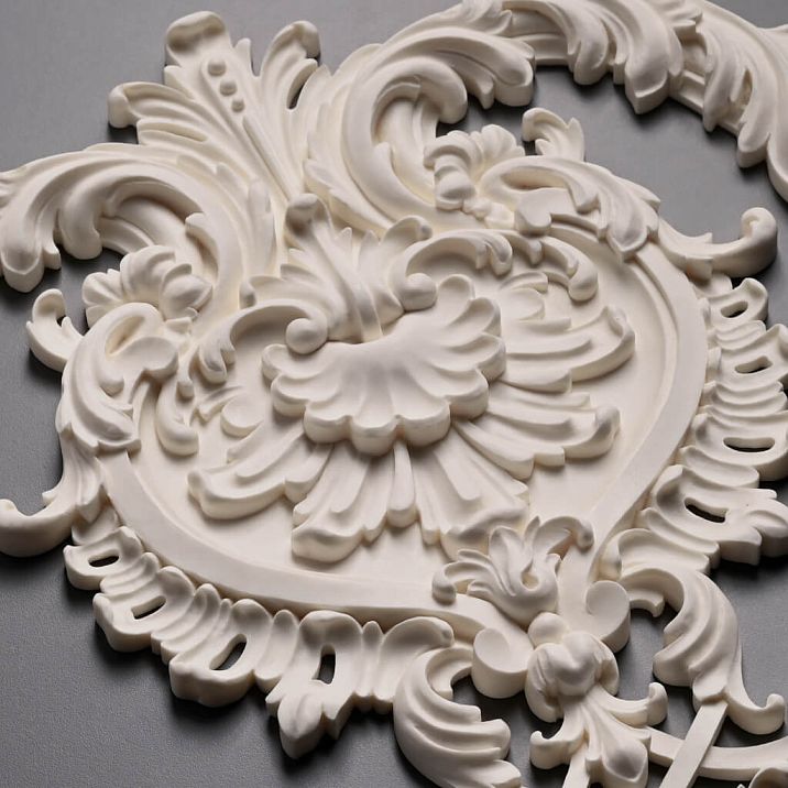 applique for furniture NPU-413 is made of high-quality polyurethane that perfectly imitates moldings and carvings, bringing chic and elegance to the interior. The combination of its dimensions 530x410x18 mm with its lightweight design makes installation simple and accessible to everyone. The material is easy to cut and adapts to various surfaces, allowing you to decorate furniture yourself and bring your most daring design fantasies to life.