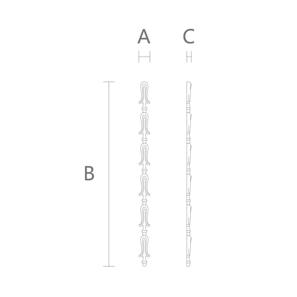 According to STAVROS classification, it's a vertical overlay with a classic relief ornament. By its functional role in interiors—it's a decorative insert, an auxiliary element of the system that brings the system to life. On furniture, it's a side trim, a dividing line, an ornamental molding. On a door—a thin vertical accent that replicates the logic of historical frame joinery. On a wall panel—an additional relief layer that gives depth to the plane.