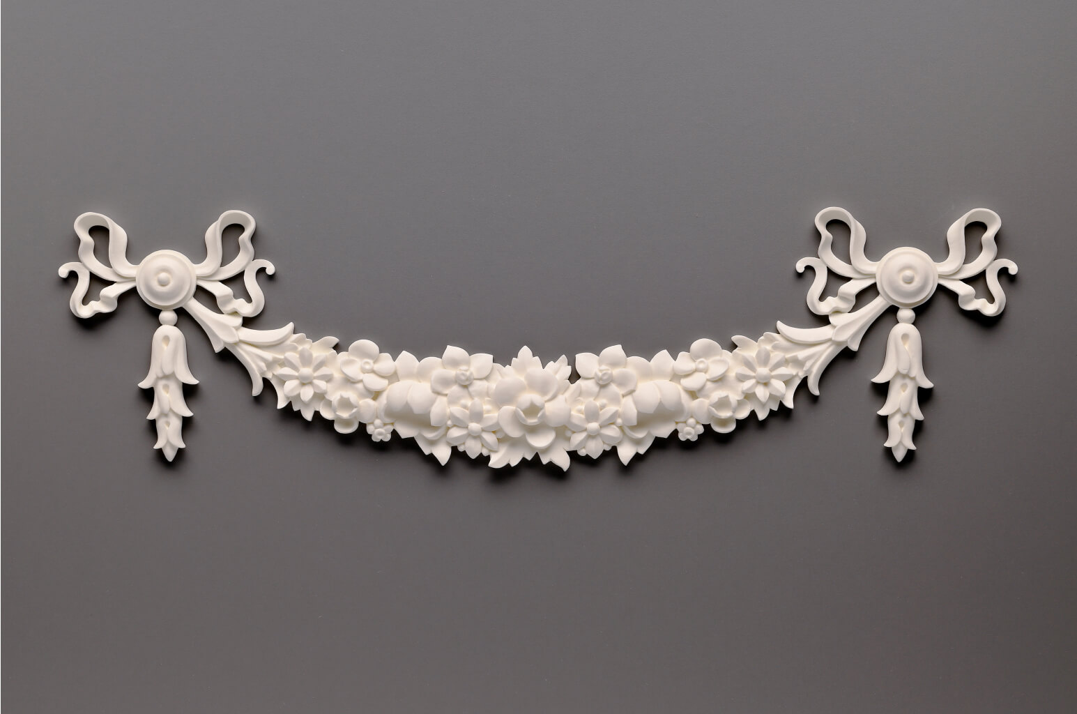Decorative appliqués – small three-dimensional elements with vegetal, geometric, or figurative ornamentation – are used to create complex compositions, embellish panels, and complement moldings and panels. Appliqués are mounted over the main decoration, creating a multi-layered relief surface.