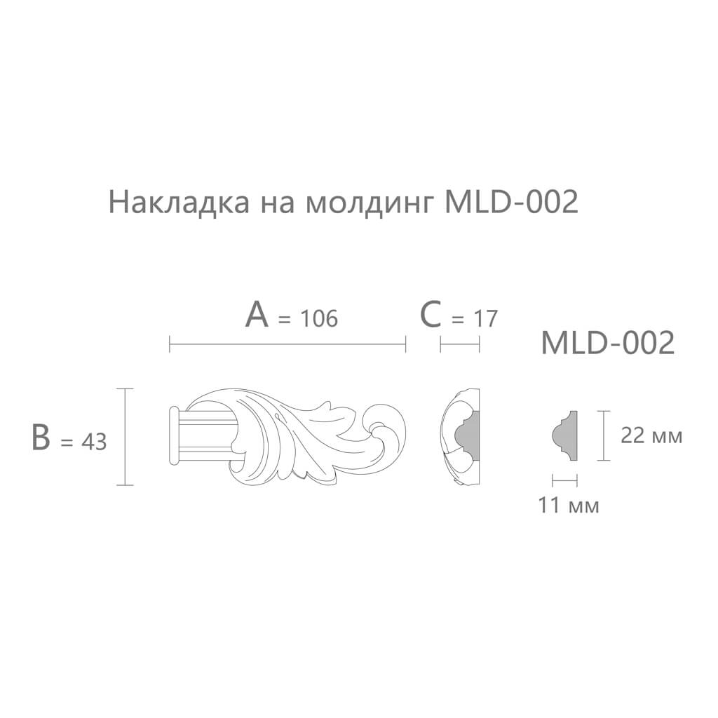 The carved tip for the facade is placed on the right end of the molding MLD-002 — where the profile ends, not going into a corner. These can be horizontal moldings inside the door, vertical lines along the sides of the layout, decorative horizontal belts between body zones. Wherever there is an open end of the profile — there the correct tip is needed.