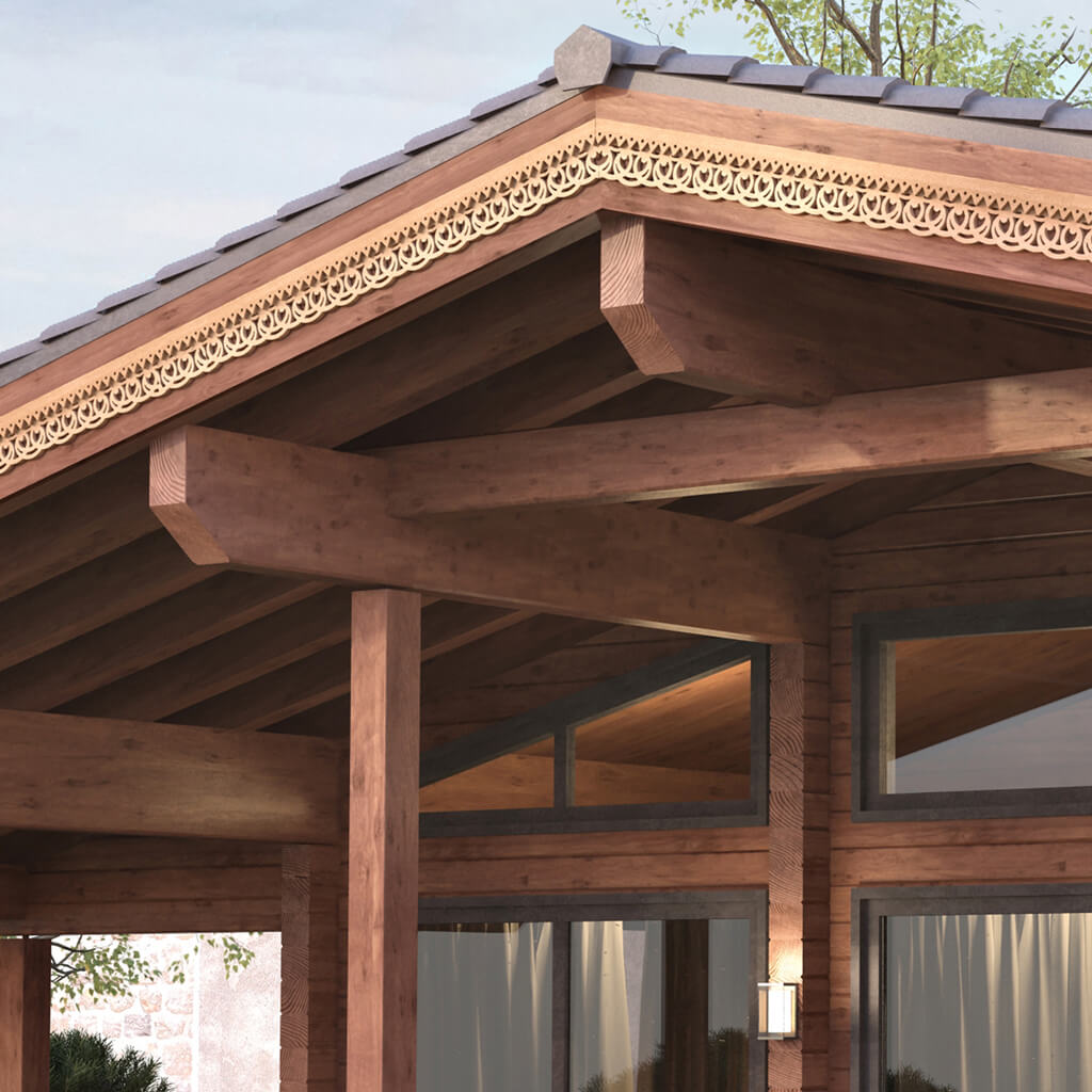 Carved Window Trim NL-5 is a decorative elementa decorative element that is not just an ornament, but a way to highlight the status and individuality of your home. This elegant pine detail is mounted around doors or windows, giving these openings a finished and rich appearance. With such door stops, you can easily add traditional Russian carving elements to your exterior or interior, immediately transforming the overall perception of the building or room.