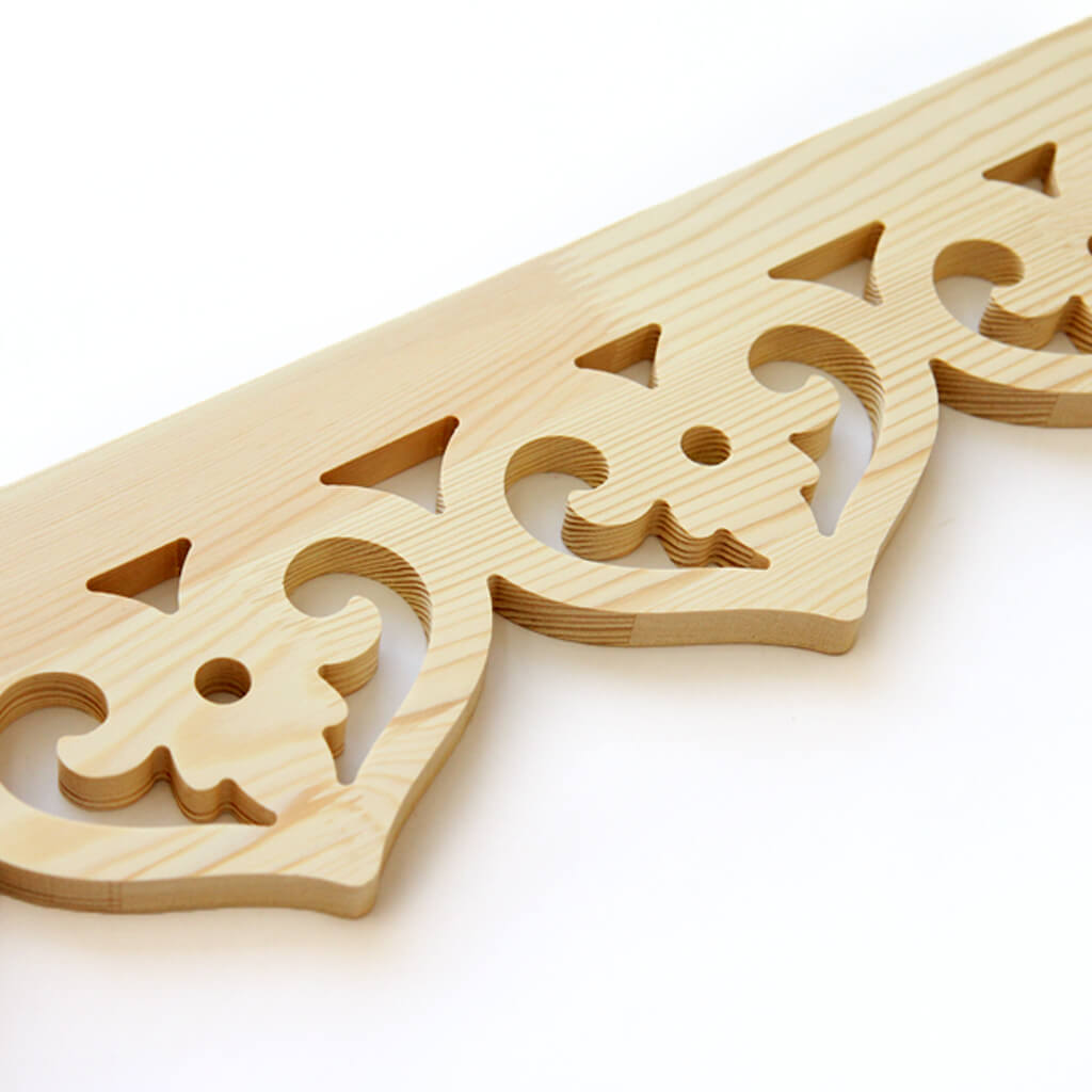 Carved Window Trim NL-6 is a decorative facade element, used in interior finishing of doors and windows, or as a decorative element for furniture facades. The dimensions of our product are 2000x162x18 mm, which allows easy integration of this door stop into various design solutions. Made from high-quality pine, it not only brings warmth and coziness to your home, but also serves as a reliable and long-lasting accessory.