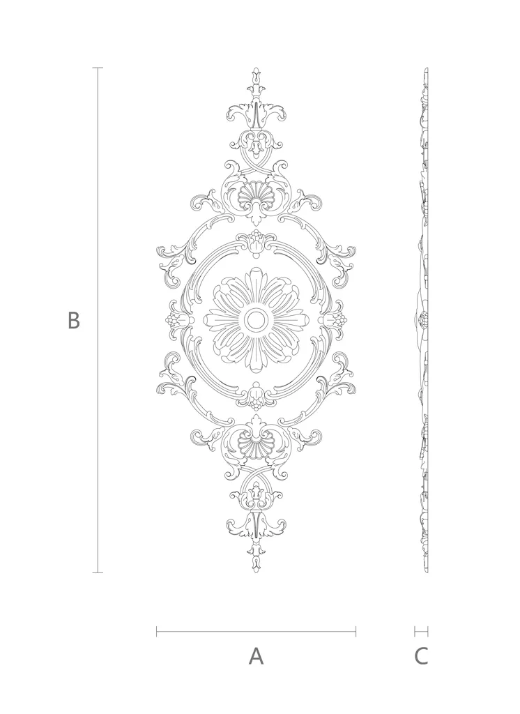 The wooden decor set C-020 is a set of nine carved appliqués of different shapes and sizes, decorated with carved leaf and flower motifs. Each appliqué has its own purpose and is suitable for a specific part of furniture or interior. For example, there are appliqués for fronts, doors, windows, corners, edges, and centers. You can combine appliqués according to your taste and create unique compositions in the interior.