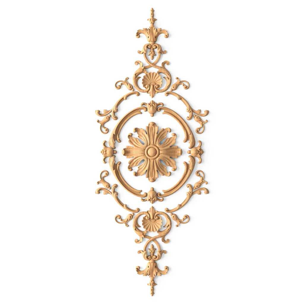 ● Size and shape of the surface to be decorated. The wooden decor set C-020 consists of nine appliqués of different shapes and sizes, so you can select suitable appliqués for any surface. For example, for decorating a cabinet front, you can use a round rosette and a square appliqué; for decorating a door, you can use rectangular appliqués with scrolls; and for decorating a window, you can use a round appliqué with petals.
