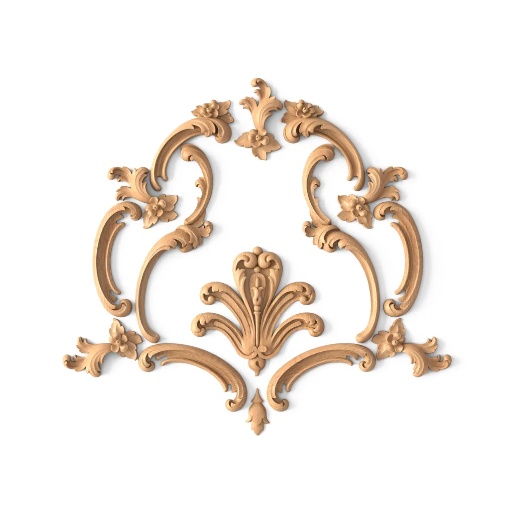 Wooden Decor Set C-036 is a set of ten carved appliqués that can be used to decorate old furniture, such as wardrobes, chests, side tables, tables, and others. These appliqués are made of natural wood (oak or beech) using traditional wood carving techniques. They have an exquisite and luxurious Floral Ornamenteffect that creates a sense of volume and relief. The wooden decor set C-036 will give your furniture a new look and style, as well as hide its defects and wear.