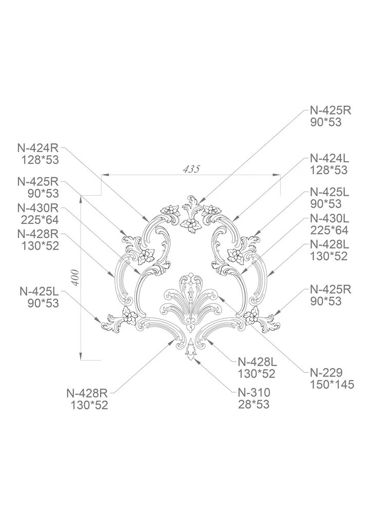 Decor Set Wooden Decor Set C-036 looks very aesthetically pleasing and luxurious. The wood carving is done by skilled artisans with great experience and talent, who have embodied the beauty and grace of nature in wood. The floral ornament has many details and nuances that give the appliqués volume and relief. Each appliqué is a work of art that can be admired endlessly, discovering new forms and meanings in it. The wooden decor set C-036 will suit any interior style, whether classic, modern, Provence, country, or another. It will harmoniously combine with different materials, colors, and textures, creating a unique and distinctive look for your furniture.